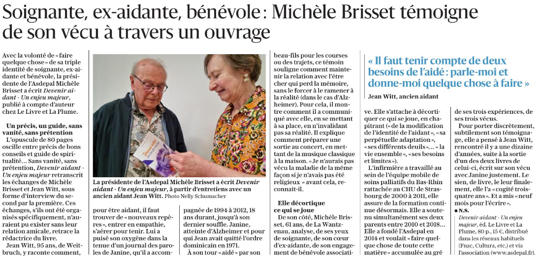 Soignante, ex-aidante, bénévole : Michèle Brisset témoigne de son vécu à travers un ouvrage