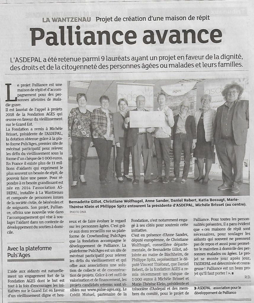 DNA de mars 2019Par Asdepal / avril 30, 2020 3 000 euros au profit de l’ASDEPAL Lire en ligne Palliance avance
