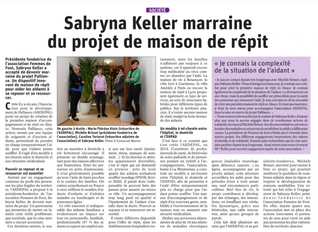 Présidente fondatrice de l’association Femmes de Foot, Sabryna Keller, a accepté de devenir marraine du projet Palliance. Un dispositif innovant de maison de répit pour aider les aidants à se reposer et se ressourcer.
